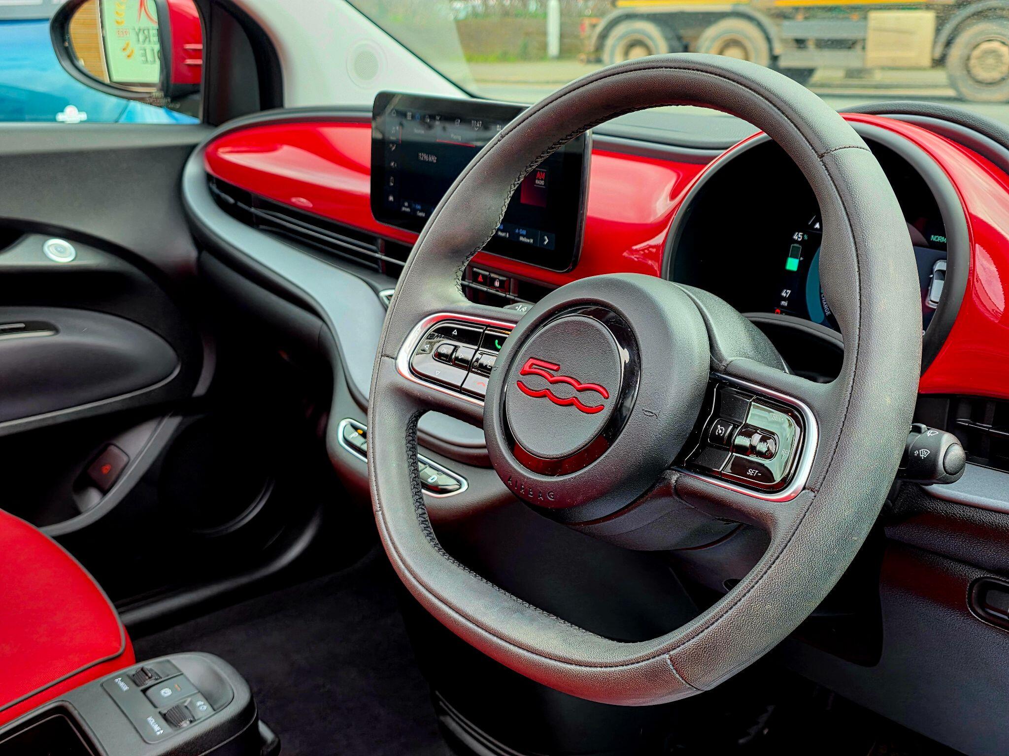 This 2022 Fiat 500e C RED is a superb example, having had only one owner since new. This stylish electric hatchback offers a compelling blend of modern technology and eco friendly driving. With its 42 kWh battery, it provides a maximum range of 192 miles, making it ideal for both city commutes and longer journeys. Charging is convenient, taking approximately 6 hours at home using a 7kW charger, and for rapid top ups on the go, it can reach 80% charge in just 35 minutes at a public charging station. This particular model comes equipped with a Mode 2 charging cable, automatic headlights activated by a dusk sensor, automatic air conditioning with climate control, and seamless wireless integration for both Apple CarPlay and Android Auto.