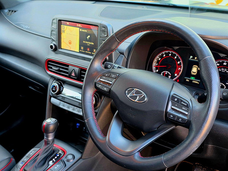 This Hyundai Kona Iron Man Edition is a limited-run compact SUV created in collaboration with Marvel, featuring exclusive matte grey and red styling inspired by Tony Stark's suit. Limited to 300 units in the UK. This Hyundai KONA T-GDi Iron Man Edition is a truly special find, boasting exceptionally low mileage for its age, having covered just 17,000 miles. As a Euro 6 compliant model, it represents a smart choice for the environmentally conscious driver. This distinctive Iron Man Edition comes equipped with a responsive 1.6 litre petrol engine, offering an engaging driving experience. You'll also appreciate the convenience of a rear camera and guidance system, full LED headlights for superior visibility, and a blind spot detection system to enhance safety on every journey.